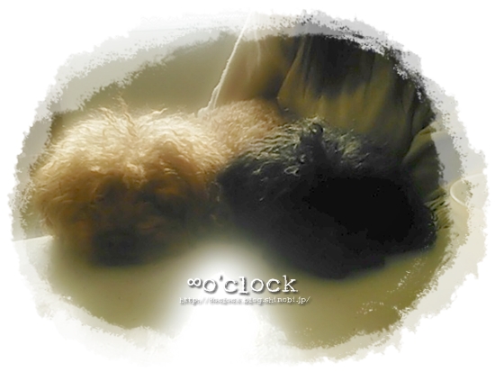 だってぇ、ワンコたちがテーブルにあごを乗っけてこちらを見てるのが